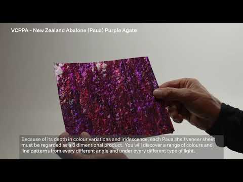 Some sizes include an acid-free peel & stick backing for effortless application to flat and clean surfaces. This veneer is ideal for inlay, jewellery, marquetry, decorative accents, and surface embellishment. It is made from genuine pāua shell with a colour-enhanced purple agate tint and gloss finish.